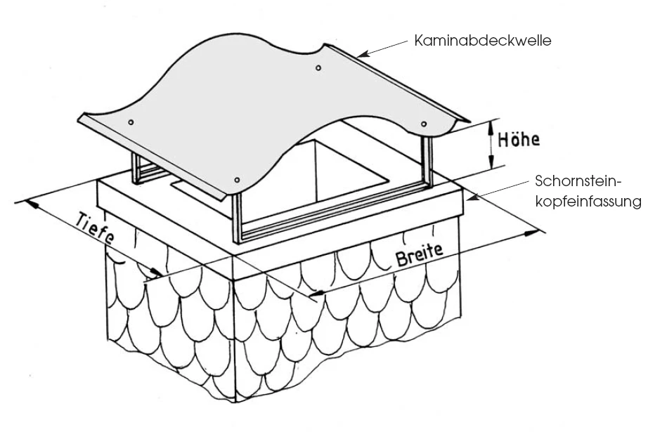 Aus hochwertigen V2A Edelstahl (matt) in der Materialstärke 1,0 mm in verschiedenen Kopfmaßen zur Abdeckung von Schornsteinschächten.