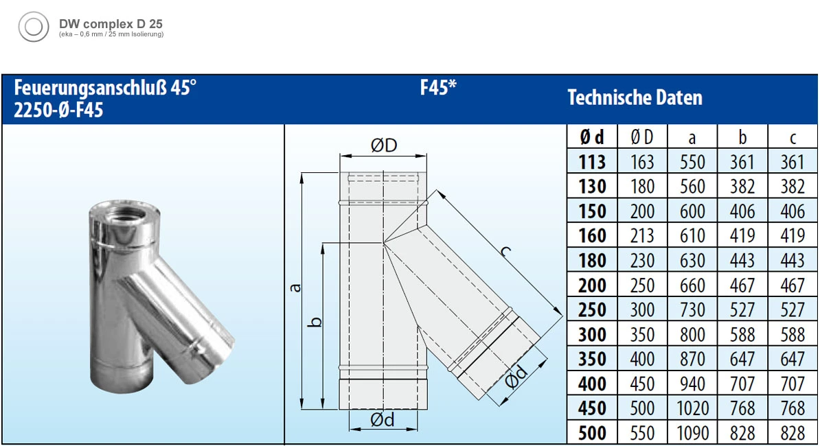 Feuerungsanschluss 45 Grad / doppelwandig / eka complex D 25