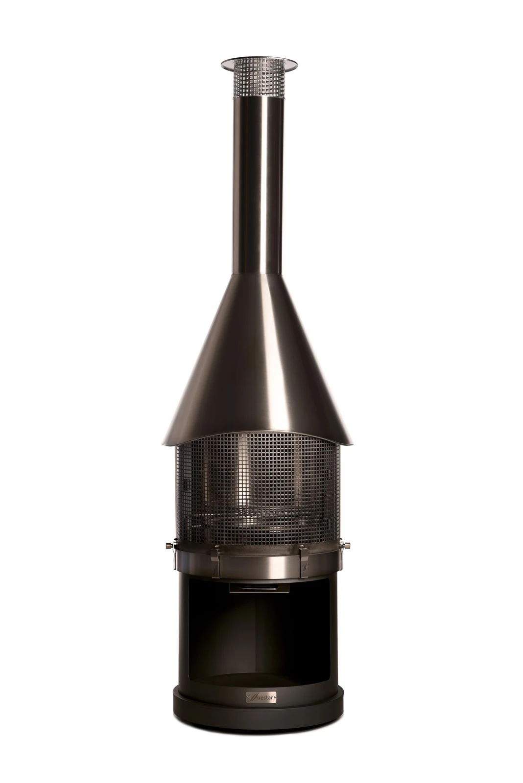 Durch sein schlankes und elegantes Design wird der Grillkamin zu einem Hingucker in Ihrem Garten. Ein Highlight ist die 360° umlaufende Funkenschutztür, welche einen besonderen Komfort bietet. Der Funkenschutz kann, wenn er nicht benötigt wird, problemlos nach hinten an den Brennraum verschoben werden.