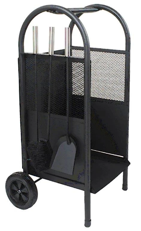 Schwarzer Holzwagen inklusive Kaminbesteck