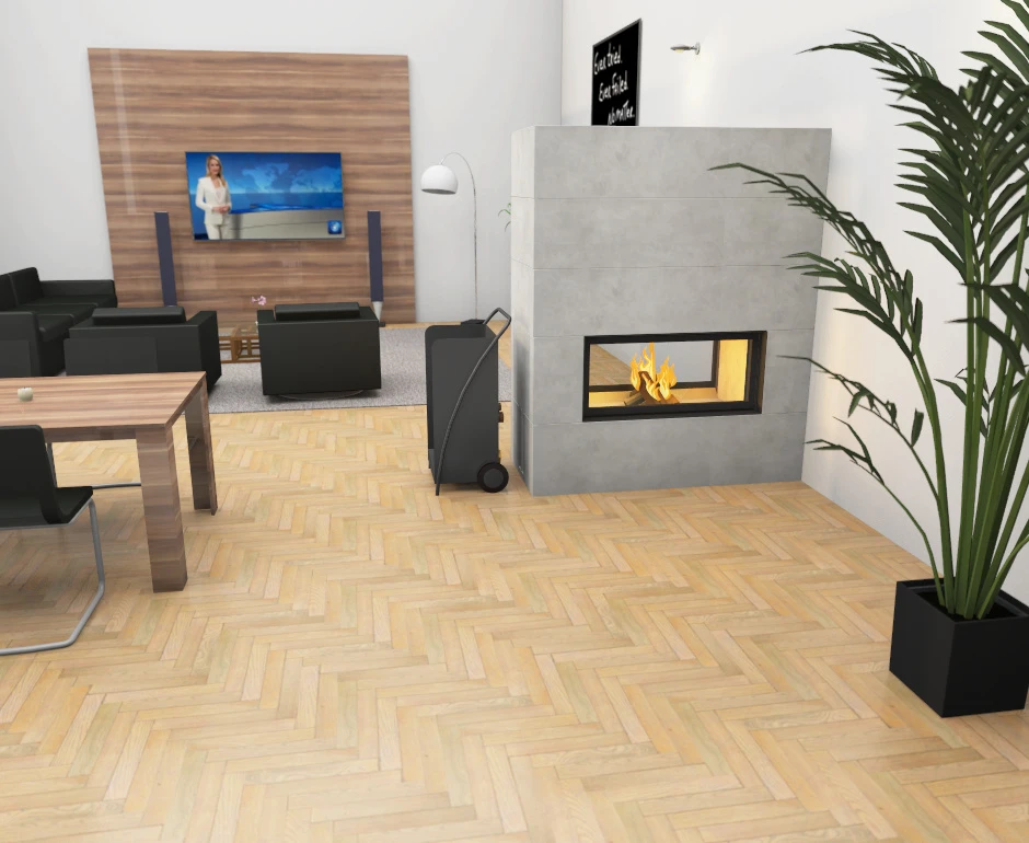 Fertig errichtet haben Sie eine energieeffiziente Wärmequelle bei sich zu Hause stehen. Über die zwei großen Sichtscheiben wird der Raum schnell erwärmt. Die aus Raum- oder Außenluft erzeugte Warmluft strömt entlang der Wärmebetonteile, ehe sie im Deckenbereich an den Wohnraum abgegeben wird. Der erhitzte Wärmebeton speichert indes die Wärme und gibt sie über einen längeren Zeitraum an die Umgebung ab.