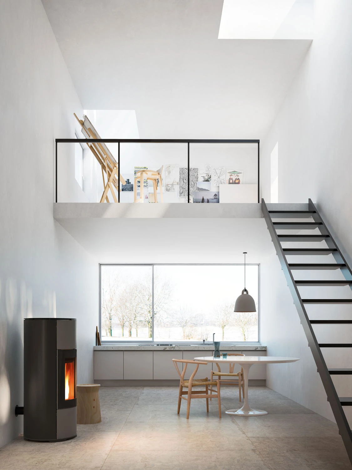 Im typisch schlanken Design von MCZ ist der Pelletofen HALO ein moderner und komfortabler Pelletofen für gemütliche Abende vor dem Feuer und effizienter Beheizung der Wohnräume.