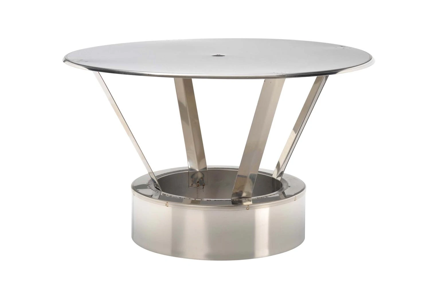 Doppelwandiger Regenhaube aus hochwertigen V4A Edelstahl in wählbaren Querschnitten 130-200 mm in der Materialstärke: 0,5 mm mit 25 mm Wärmedämmung zur Abdeckung von Schornsteinmündungen doppelwandiger Edelstahlschornsteine.