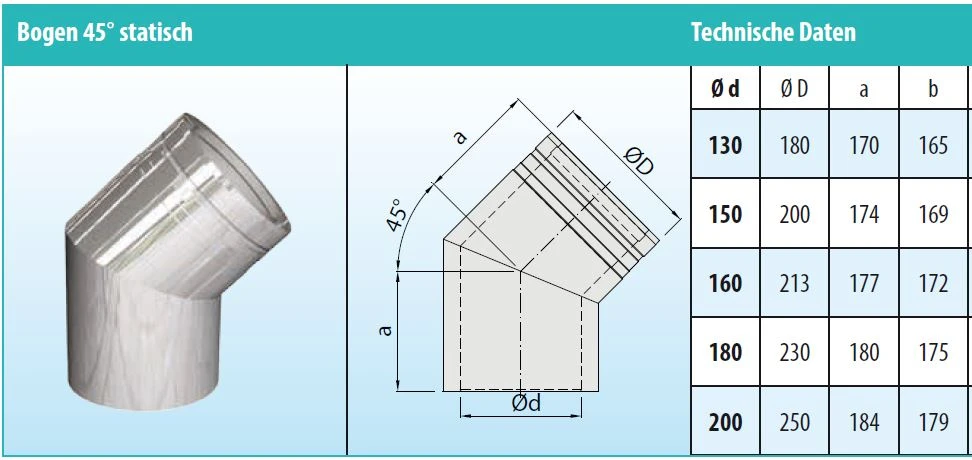 Sie setzen auf Design und edle Verarbeitung? Dann kaufen Sie das Produkt „Schornstein Winkel 45° statisch doppelwandig – eka cosmos D 25“ direkt online im Shop von CAFIRO.
