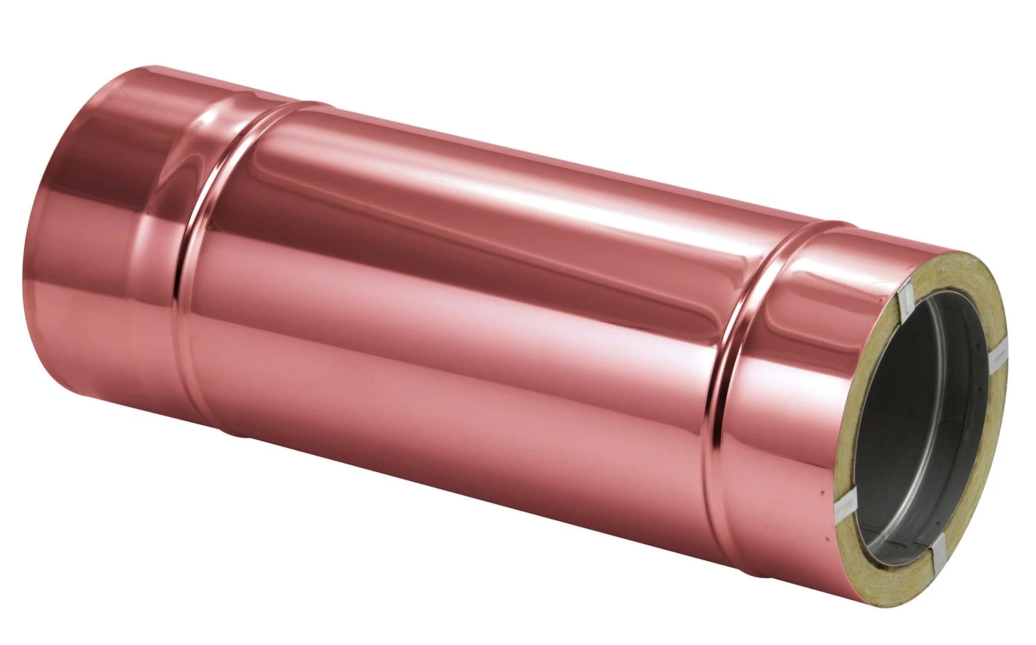 Doppelwandiges Edelstahlrohr mit galvanisch verkupferter Außenschale in wählbaren Querschnitten 113 – 400 mm aus hochwertigen V4A Edelstahl in der Materialstärke: 0,6 mm (1,0 mm auf Anfrage)