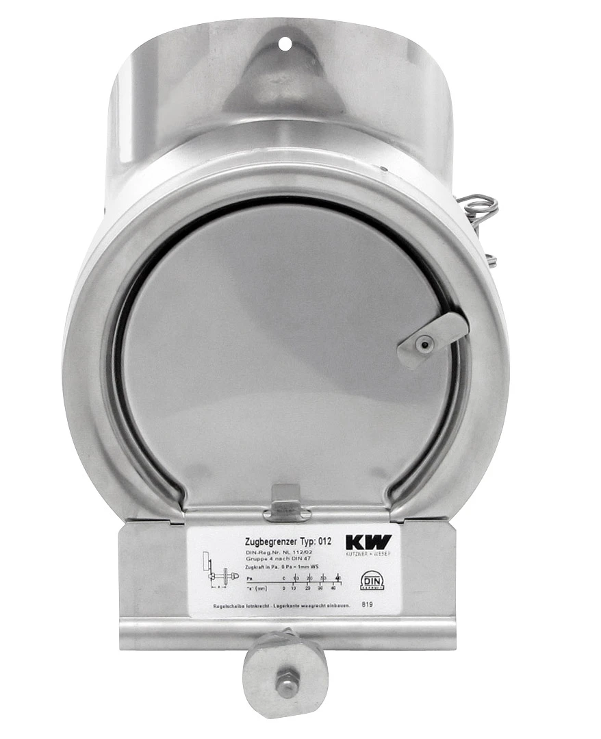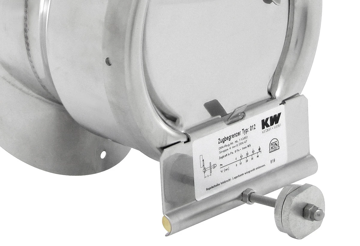 Feuerstätten wie Öl- oder Pelletkessel benötigen für ihren Betrieb einen bestimmten und konstanten Unterdruck am Abgasstutzen. Sobald der Zug im Schornstein den optimalen Wert überschreitet, öffnet sich die Klappe des Zugbegrenzers und begrenzt den Unterdruck über die zusätzlich zugeführte Luftmenge. Sobald der voreingestellte Wert erreicht ist, schließt die Klappe wieder.
